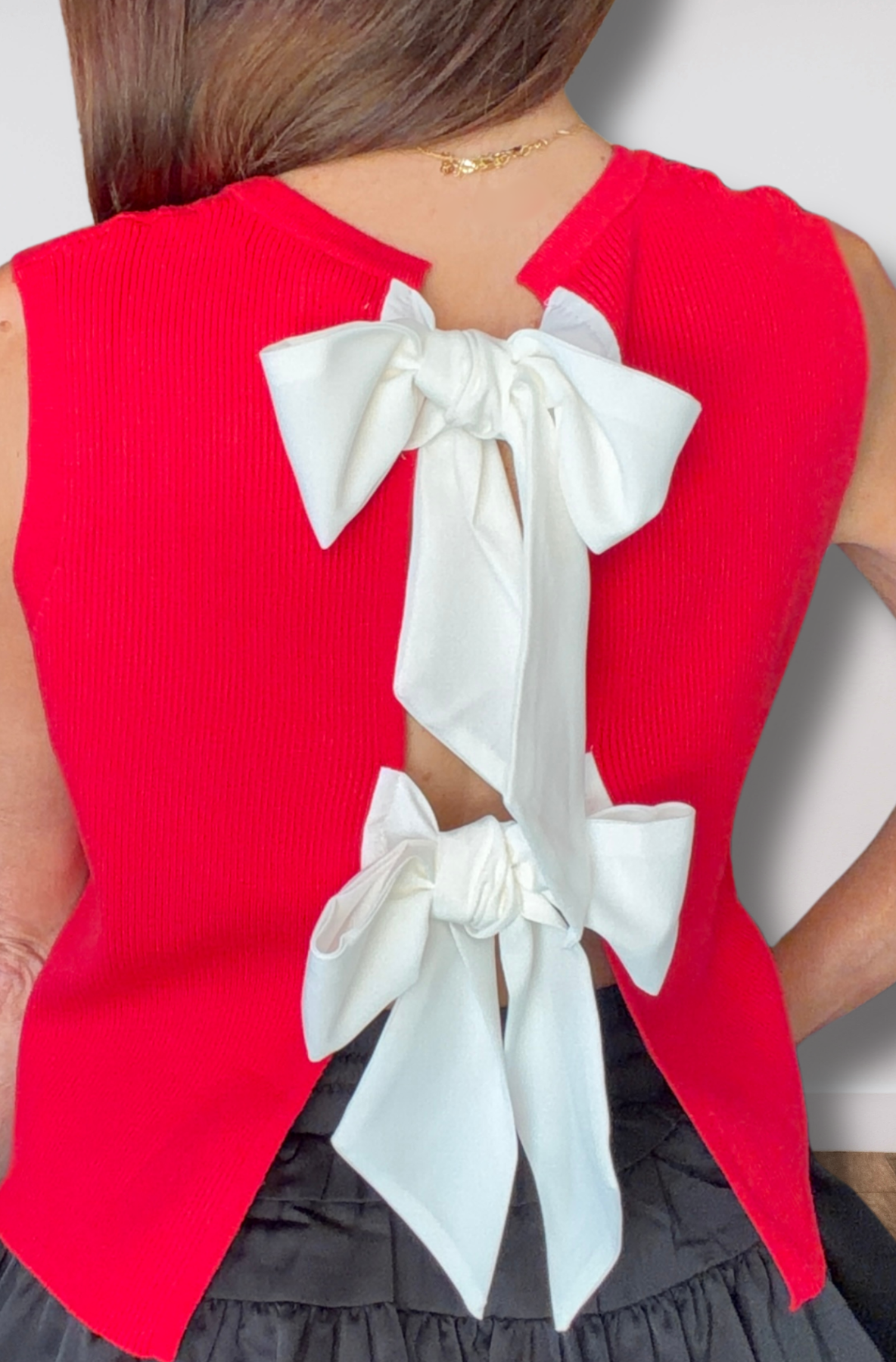 Tie Back Darling Back Bow Top - Red & White
