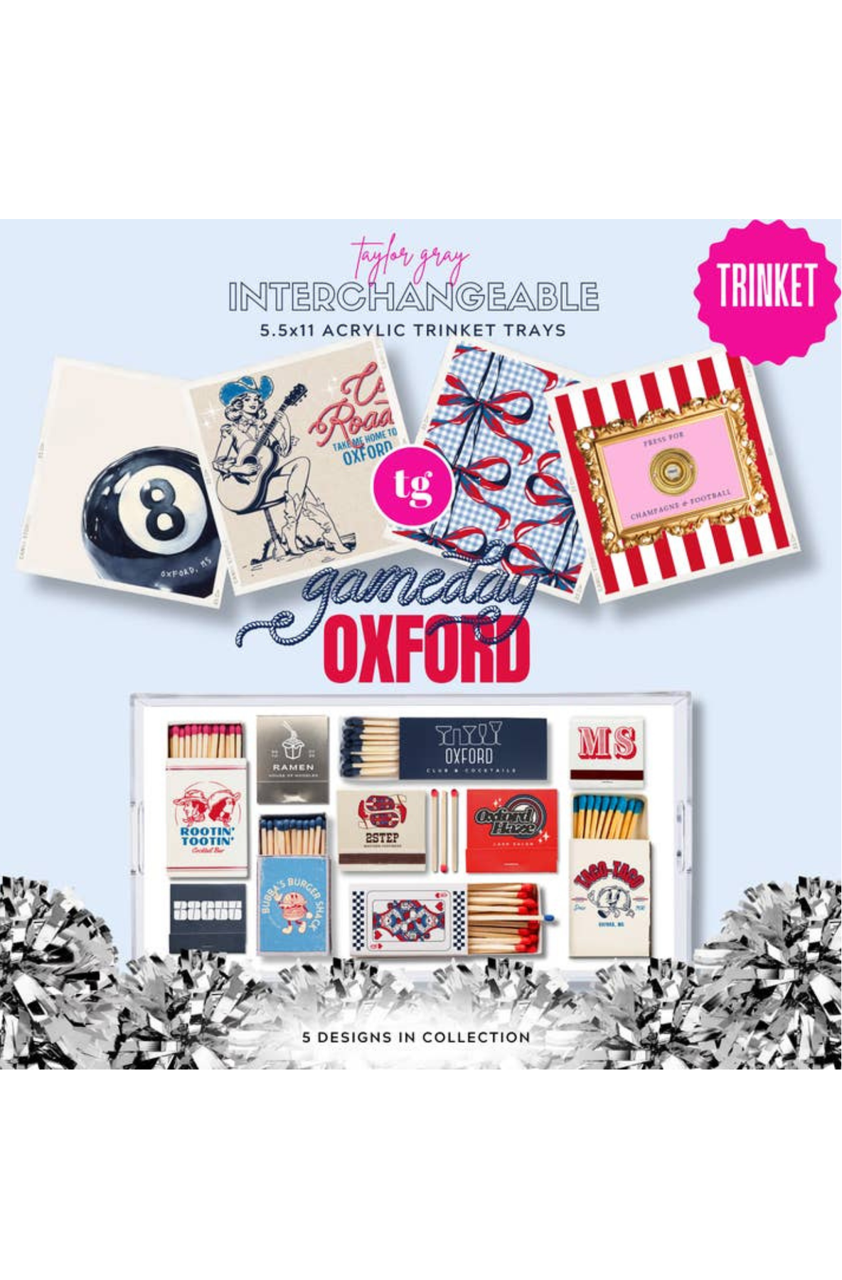Oxford how we love you! This gameday insert set is a nod to the ultimate college town, OXFORD! The fun eight balls, coquette bows, cowgirl, vintage matches and press for champagne designs are sure to make the perfect dorm statement.