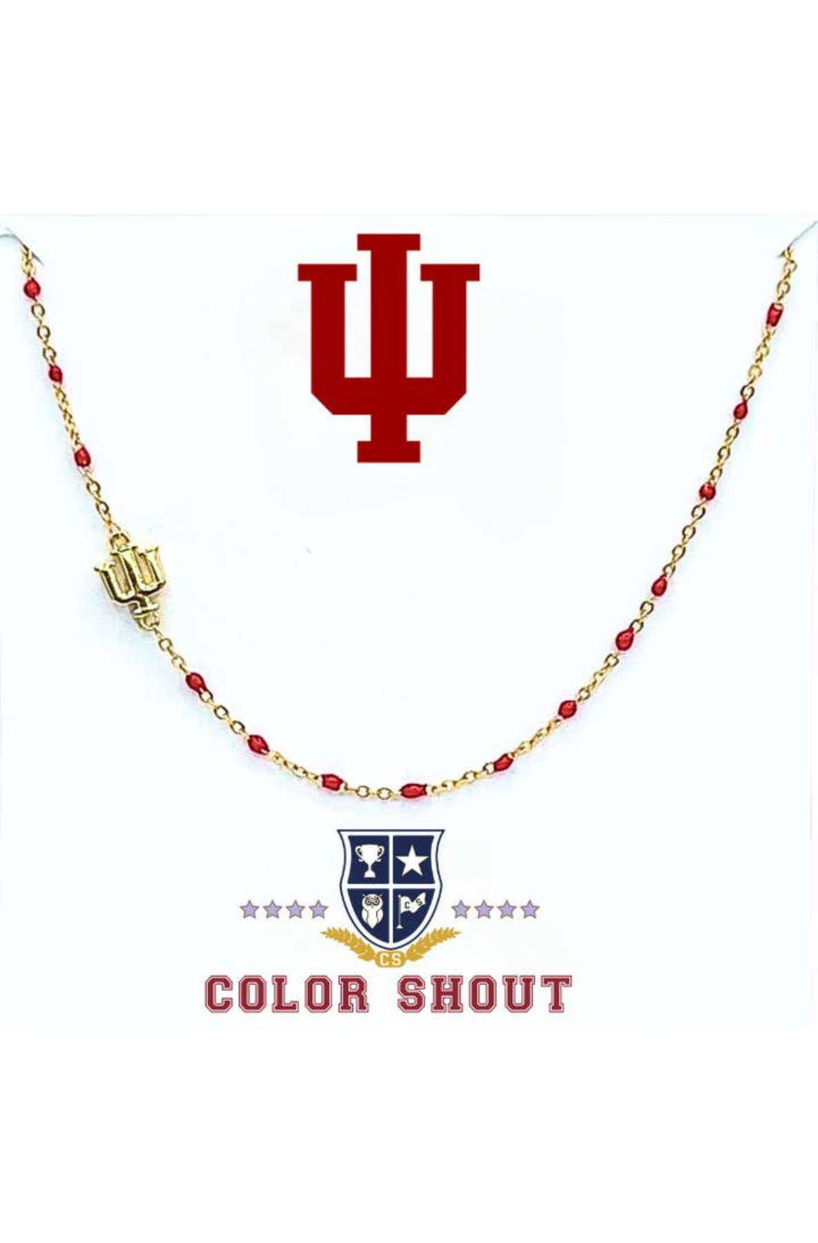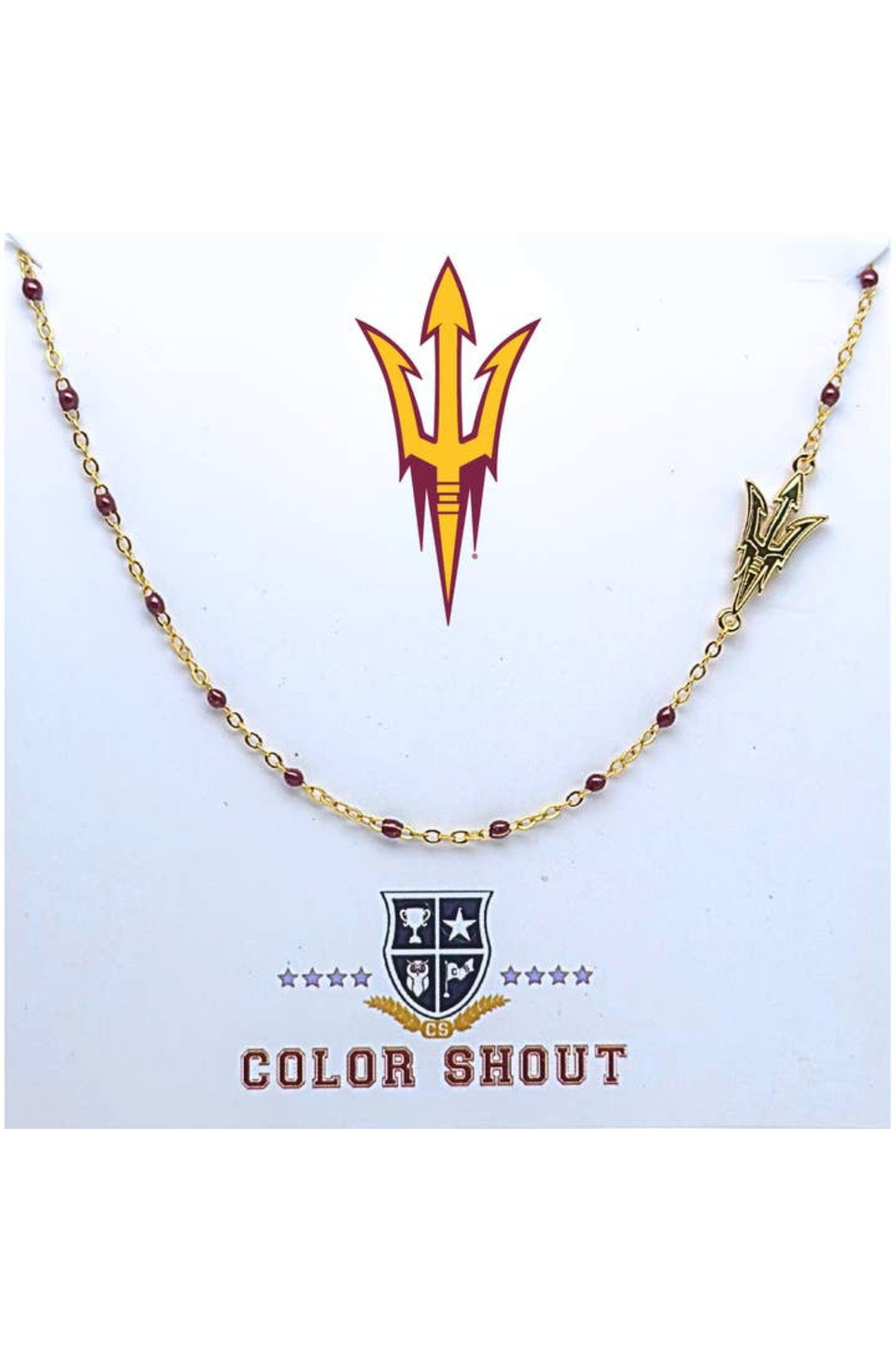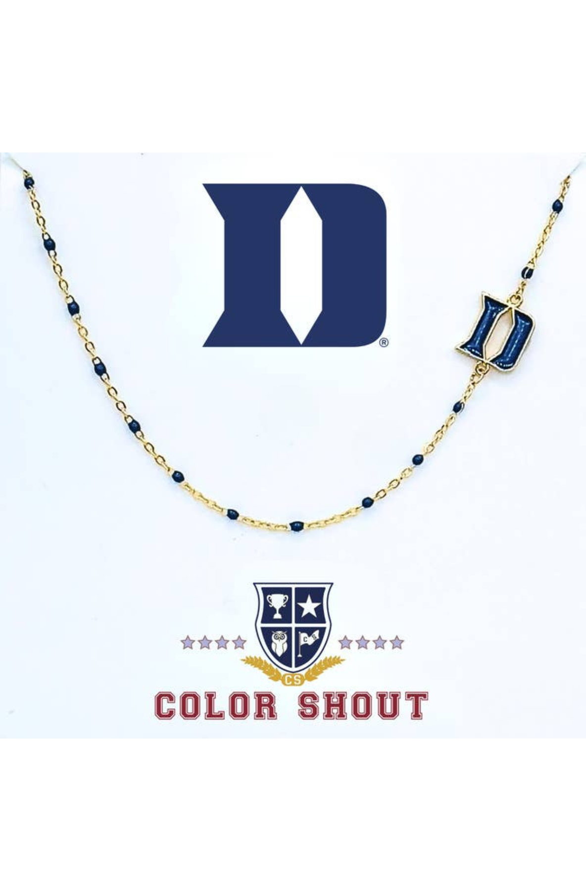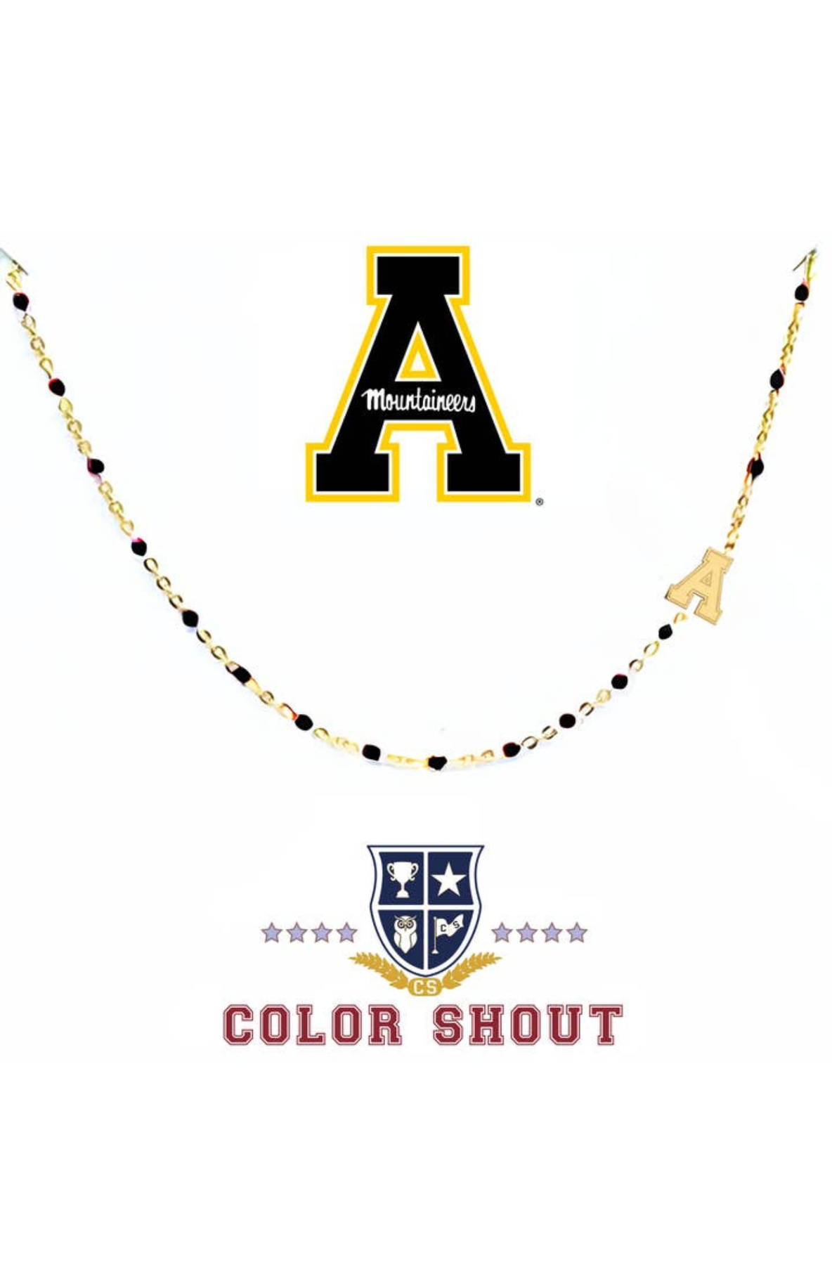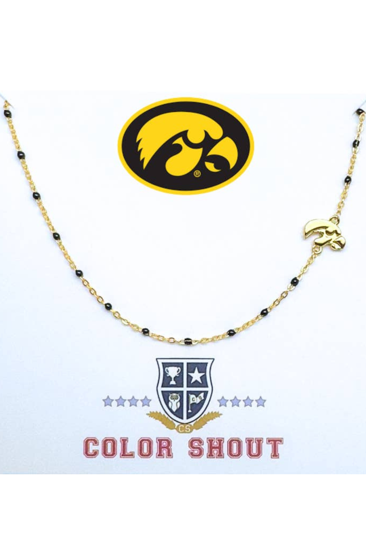 Chic and spirited, the Side Set College Logo Necklace is an adjustable 16–18 inch necklace that shines in 18K yellow gold–plated stainless steel. Accented with vibrant enamel and a side-set logo charm, it’s the perfect blend of elegance and team pride. Finished with a secure lobster claw clasp for effortless wear.