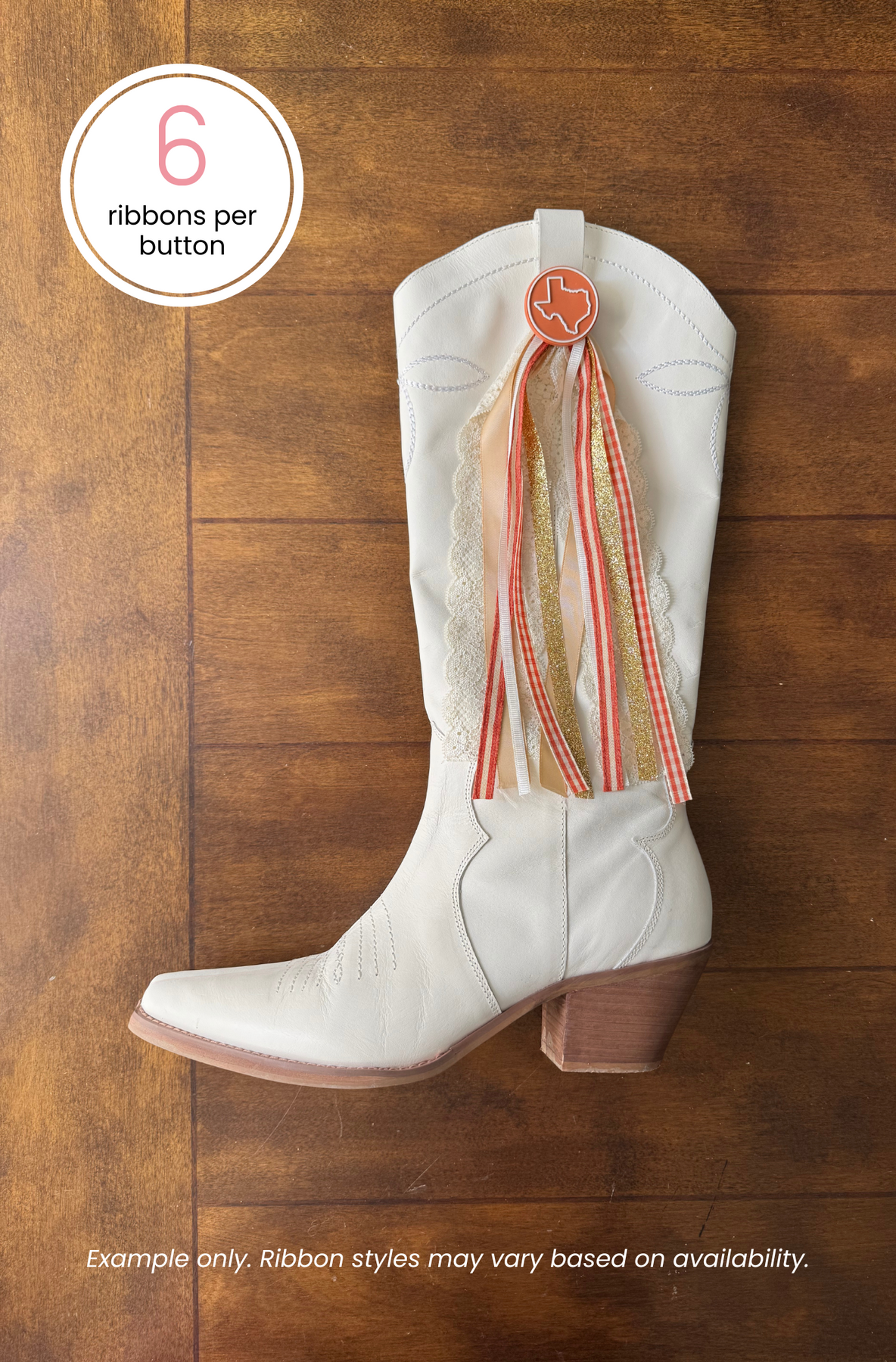 2 buttons with velcro attachments & clear ribbon bands *6 ribbons per button - 12 total |