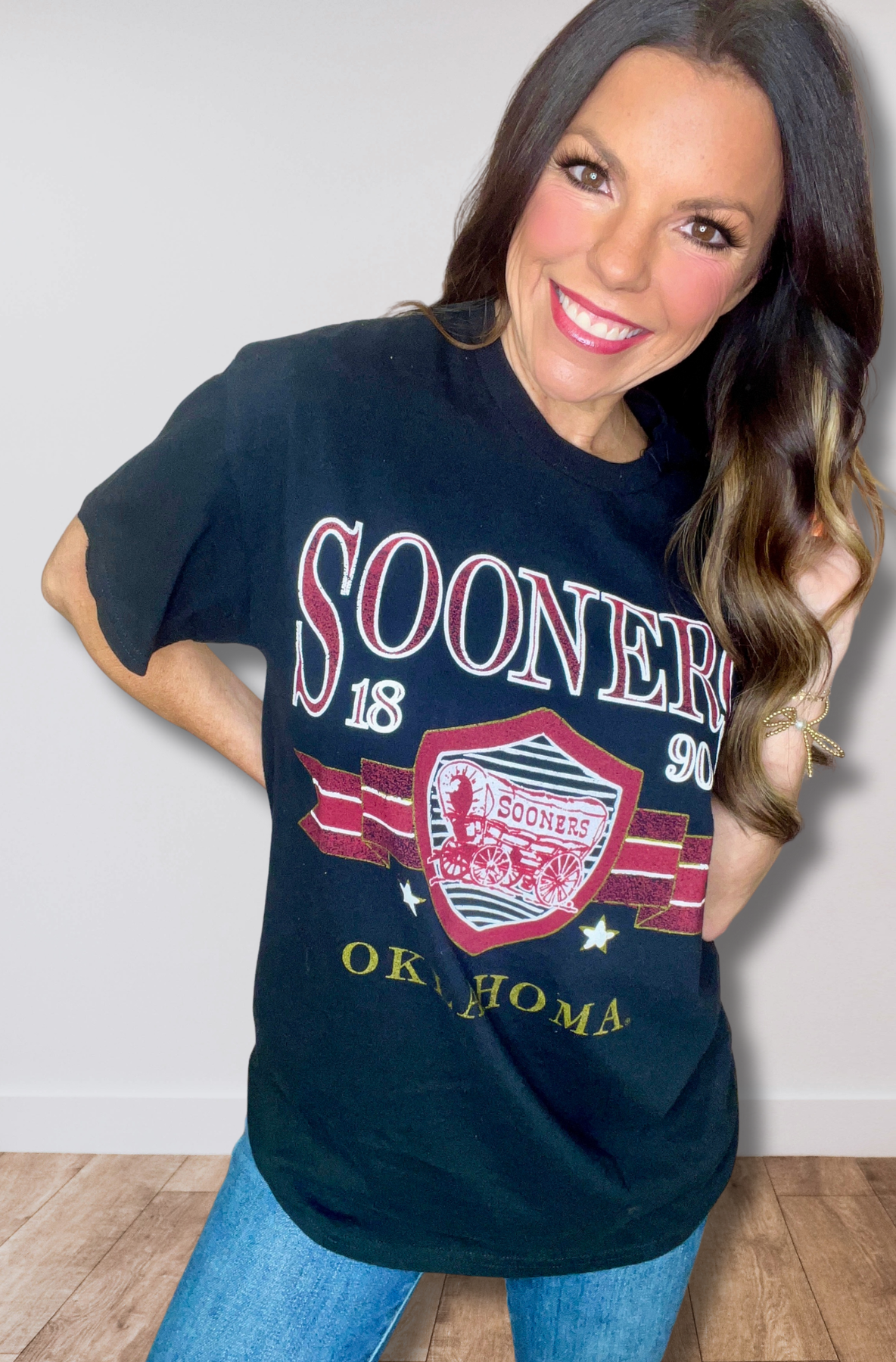 Regular price $49.00Our 100% Preshrunk Cotton, vintage inspired, graphic thrifted tees are meaningfully distressed. Each piece is one of a kind, and colors/distressing may vary from shirt to shirt. Boomer Sooner! Show off your University of Oklahoma Sooners Team Spirit with our Best Selling Graphic Tee! Perfect for Game Day or Any Day! Pairs well with vintage denim and your favorite kicks.