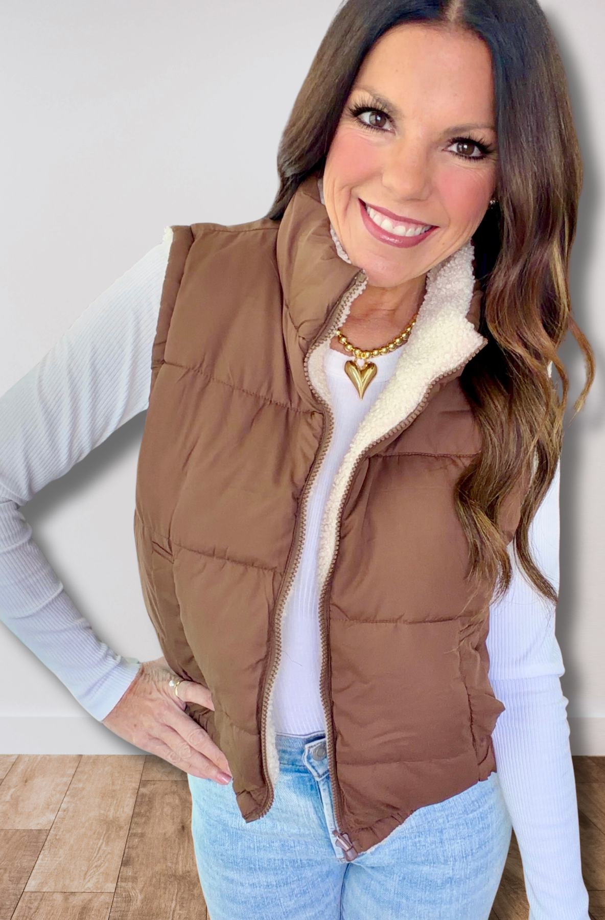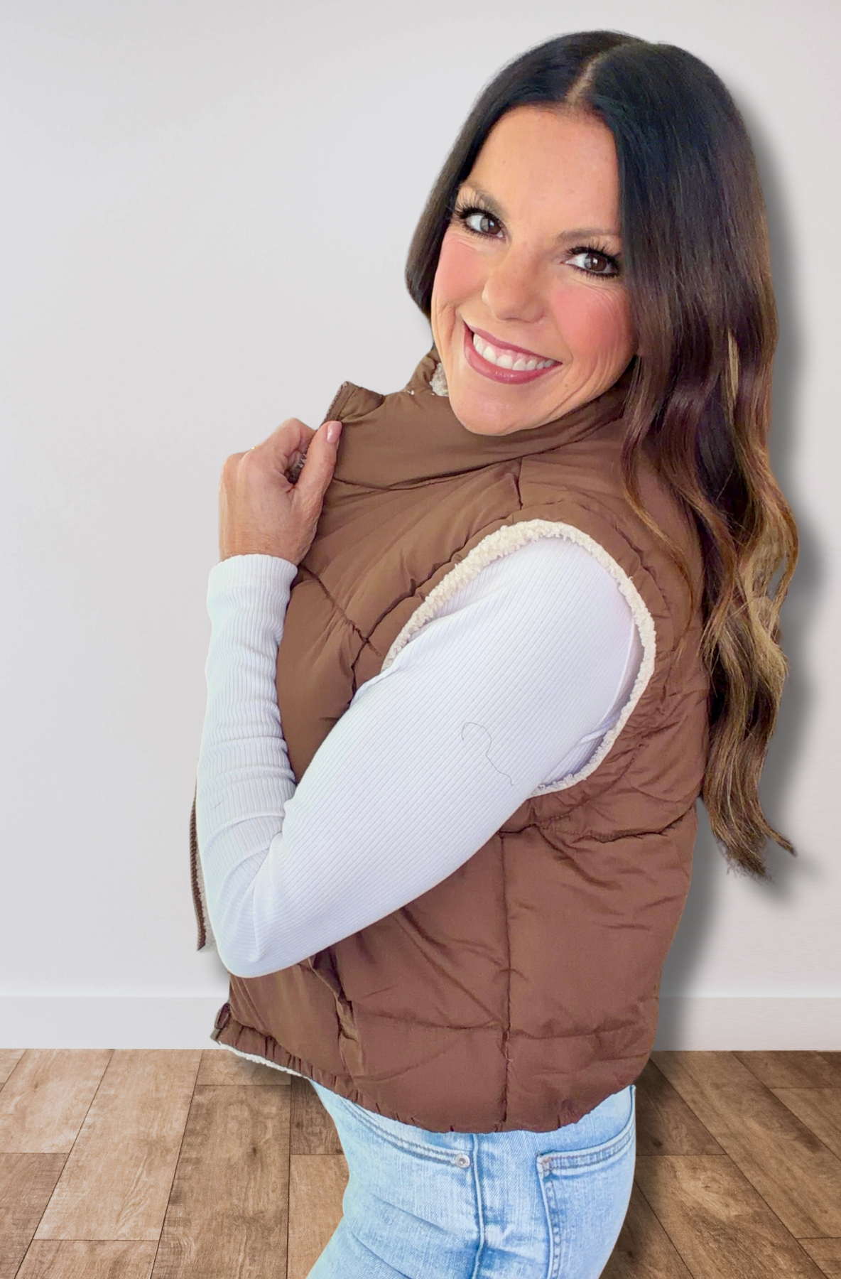 Double the style, double the cozy. The Inside Out Reversible Fur Padded Vest gives you two chic looks in one! One side features plush faux fur for a luxe, cozy vibe, while the other offers a sleek padded finish for a more casual, sporty look. Perfect for layering through chilly days, this versatile vest keeps you warm and super cute!