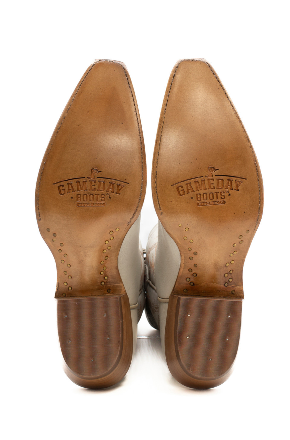 Your favorite Gameday Accessory now comes in premium ivory leather.   Same, can’t get enough of it, fresh leather smell….New look!  These handcrafted boots are sure to provide quality and comfort for countless Championship seasons to come.