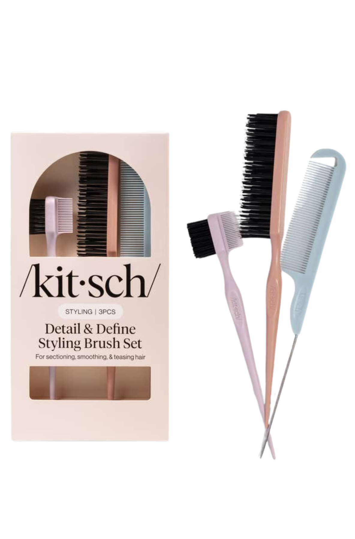 Multi-purpose set for parting, smoothing, and styling with precision Precision styling for edges, baby hairs, and flyaways Lightweight, ergonomic handles for effortless control Tames frizz, defines edges, and enhances overall hair polish Perfect for sleek ponytails, buns, braids, and detailed updos
