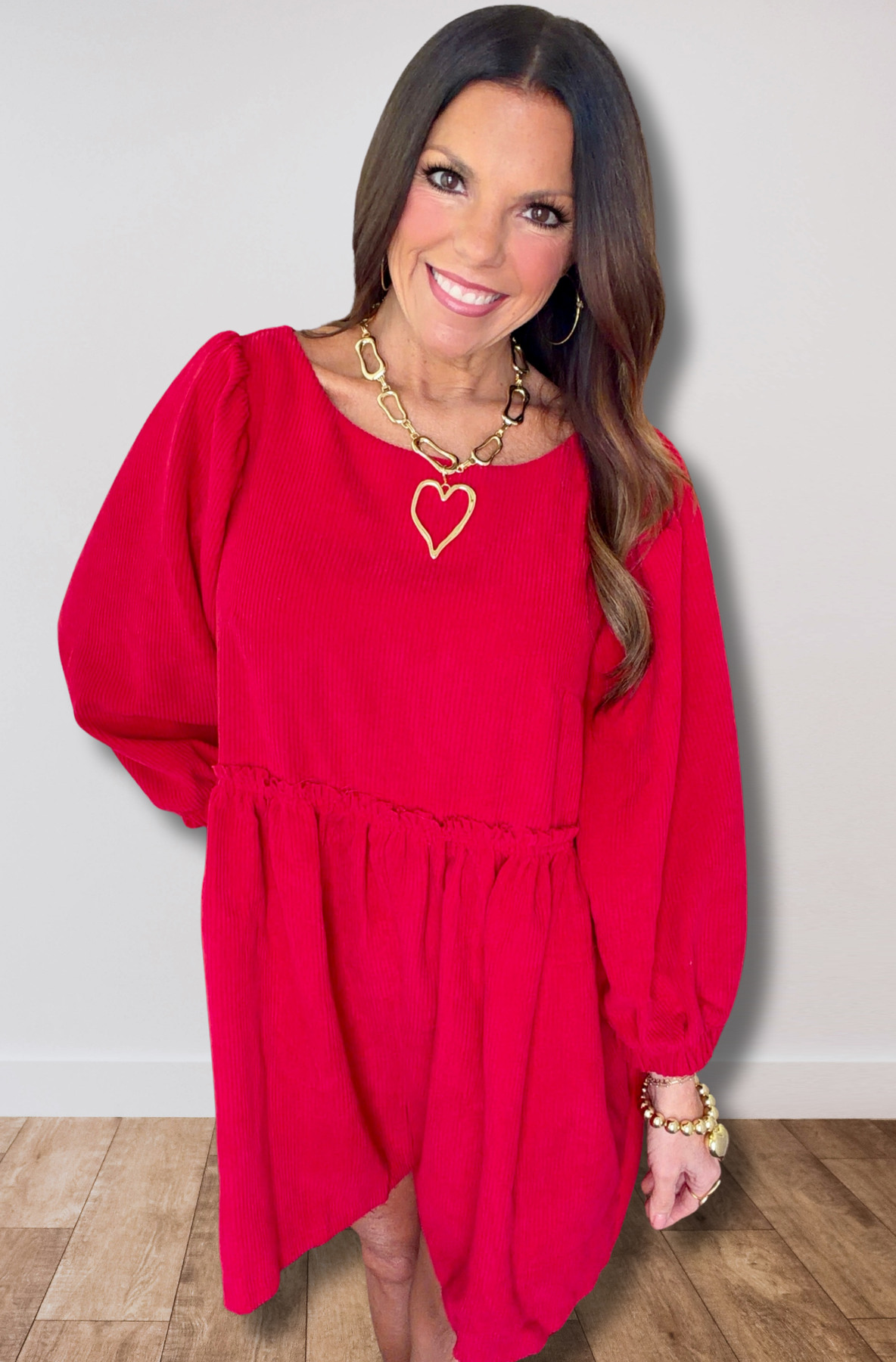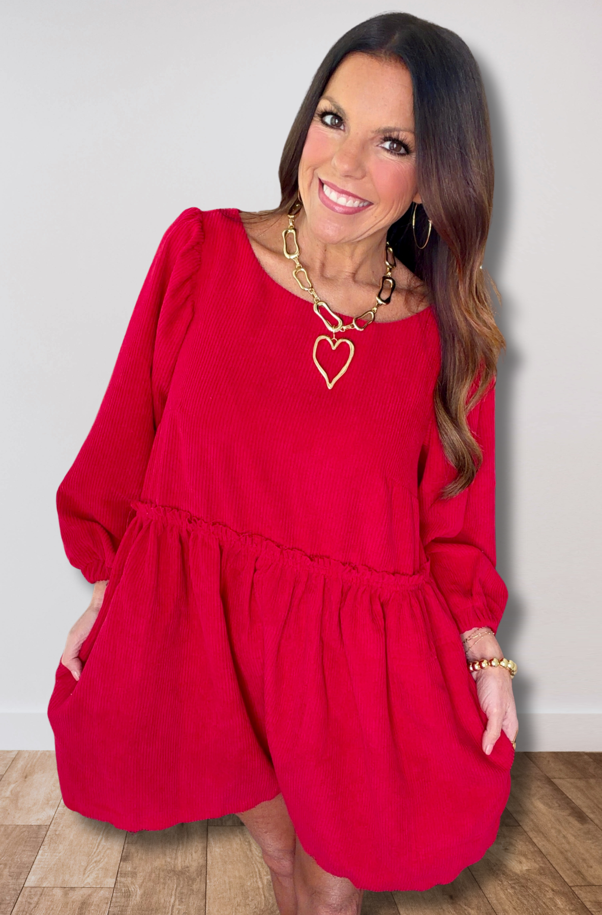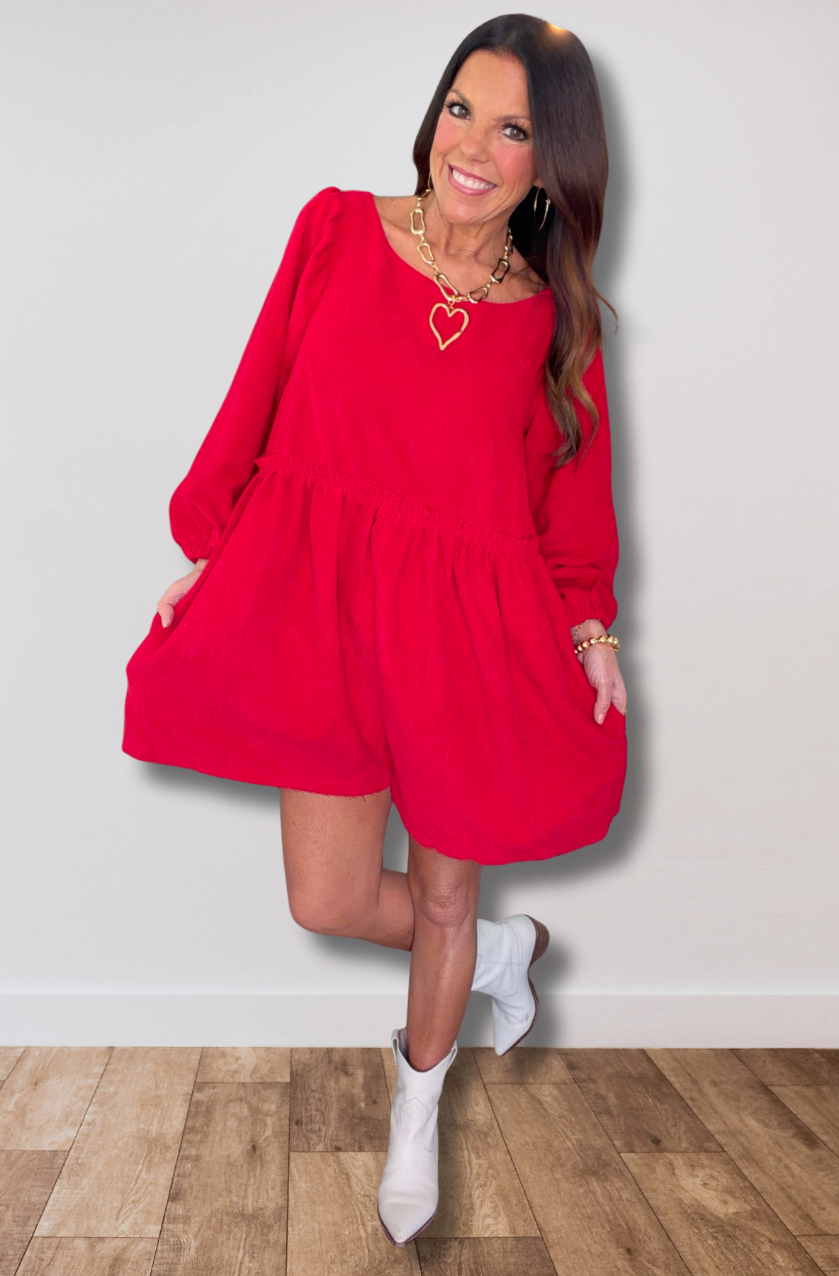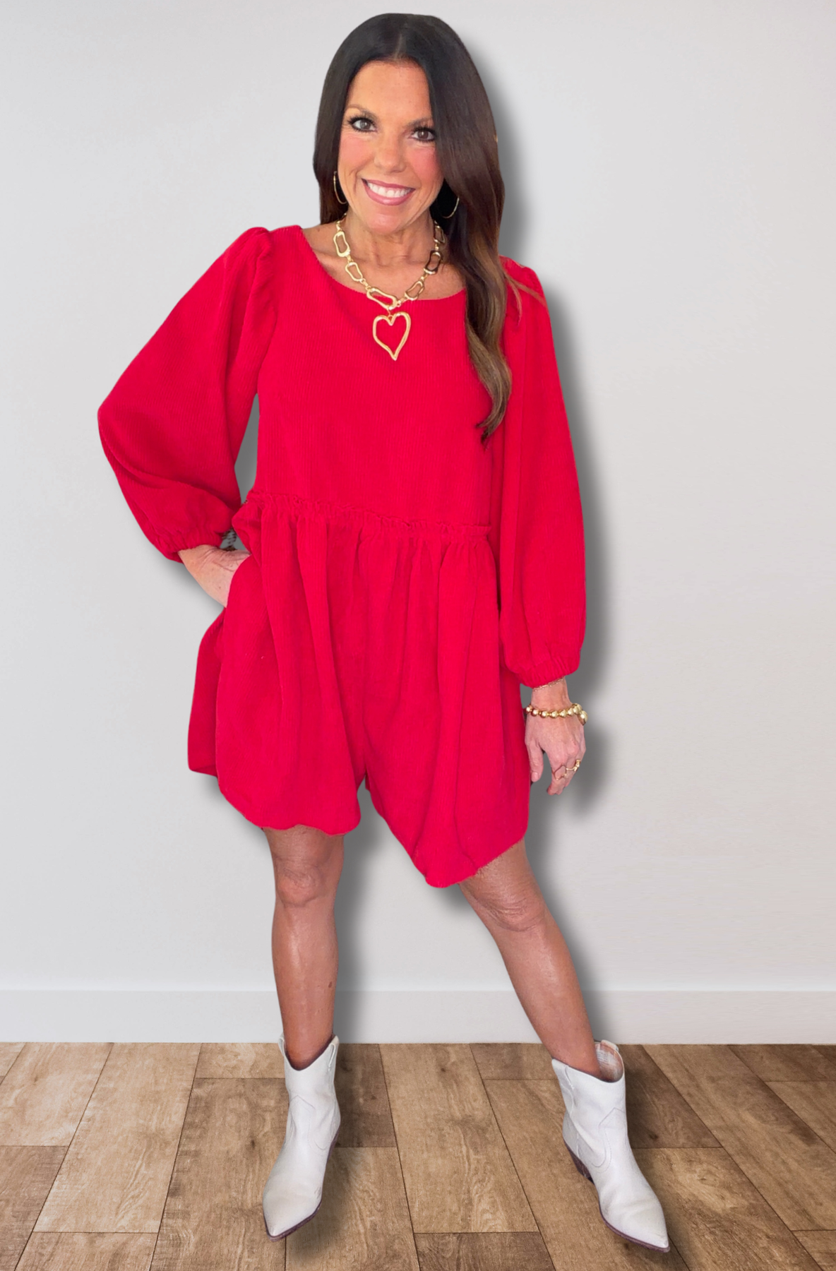 Embrace the holiday spirit in our Ruby Relaxed Romper! This oversized romper is crafted from soft corduroy in a rich, festive red hue that exudes warmth and charm. Featuring stylish 3/4 sleeves, this romper combines comfort and chic design, making it perfect for cozy gatherings, holiday parties, or casual outings with friends and family. The relaxed fit allows for easy movement, while the playful silhouette keeps you looking effortlessly stylish. Pair it with your favorite ankle boots or festive accessories to complete your holiday look. Make this season unforgettable in the Ruby Relaxed Romper! 🎉✨