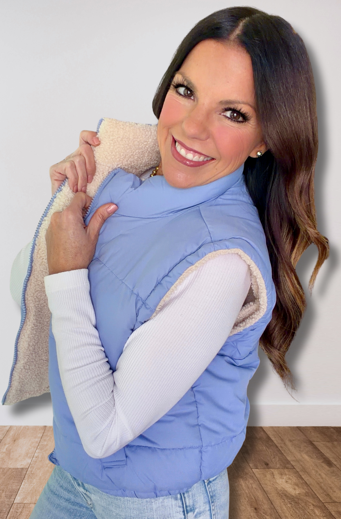 Double the style, double the cozy. The Inside Out Reversible Fur Padded Vest gives you two chic looks in one! One side features plush faux fur for a luxe, cozy vibe, while the other offers a sleek padded finish for a more casual, sporty look. Perfect for layering through chilly days, this versatile vest keeps you warm and so super cute!