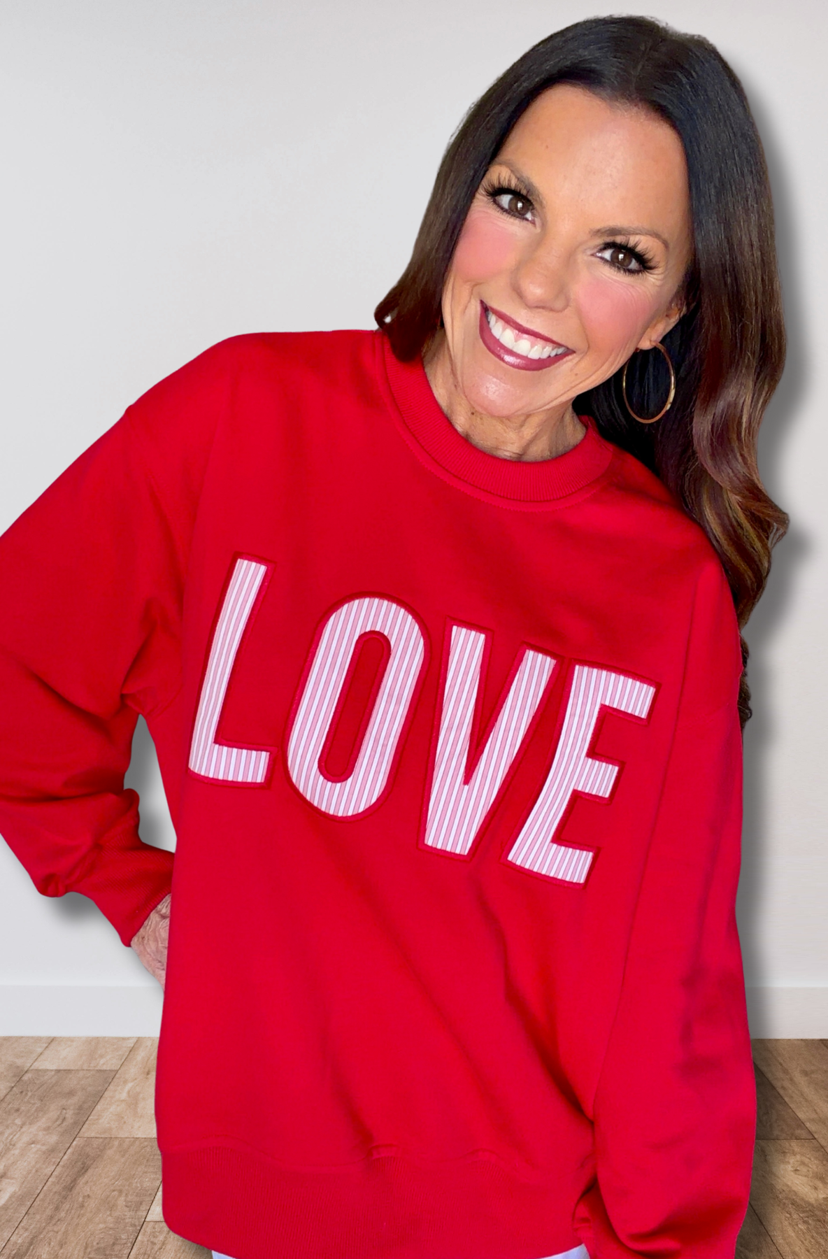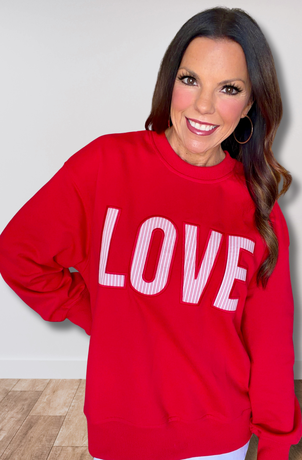 Soft on the inside and smooth on the outside, it’s perfect for anything from coffee runs and travel days to Valentine’s looks and cozy weekends. Throw it on with leggings, denim, or joggers and let your outfit say it all: LOVE.