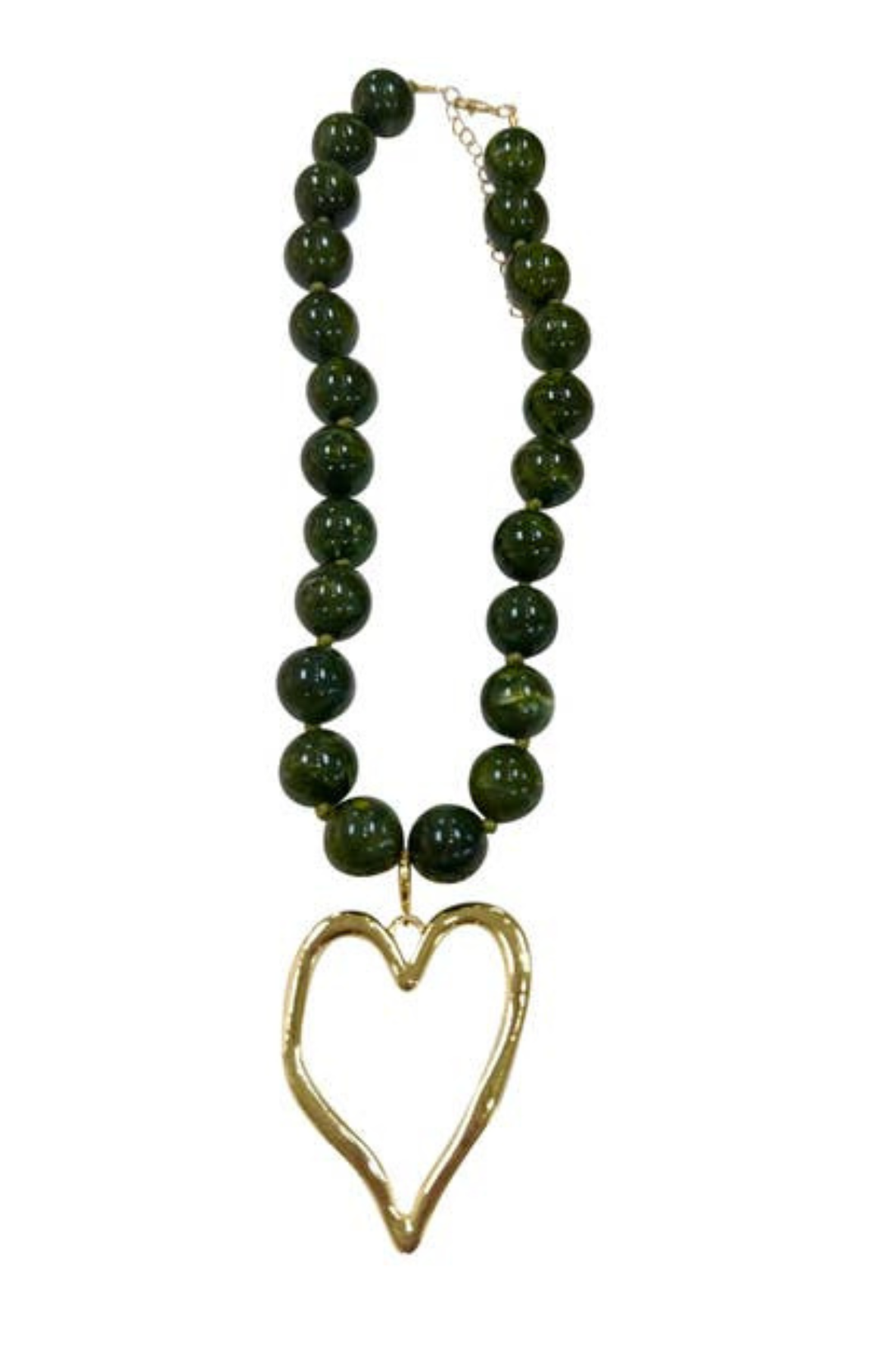 Levy Chunky Beaded Necklace with Jumbo Heart in Green