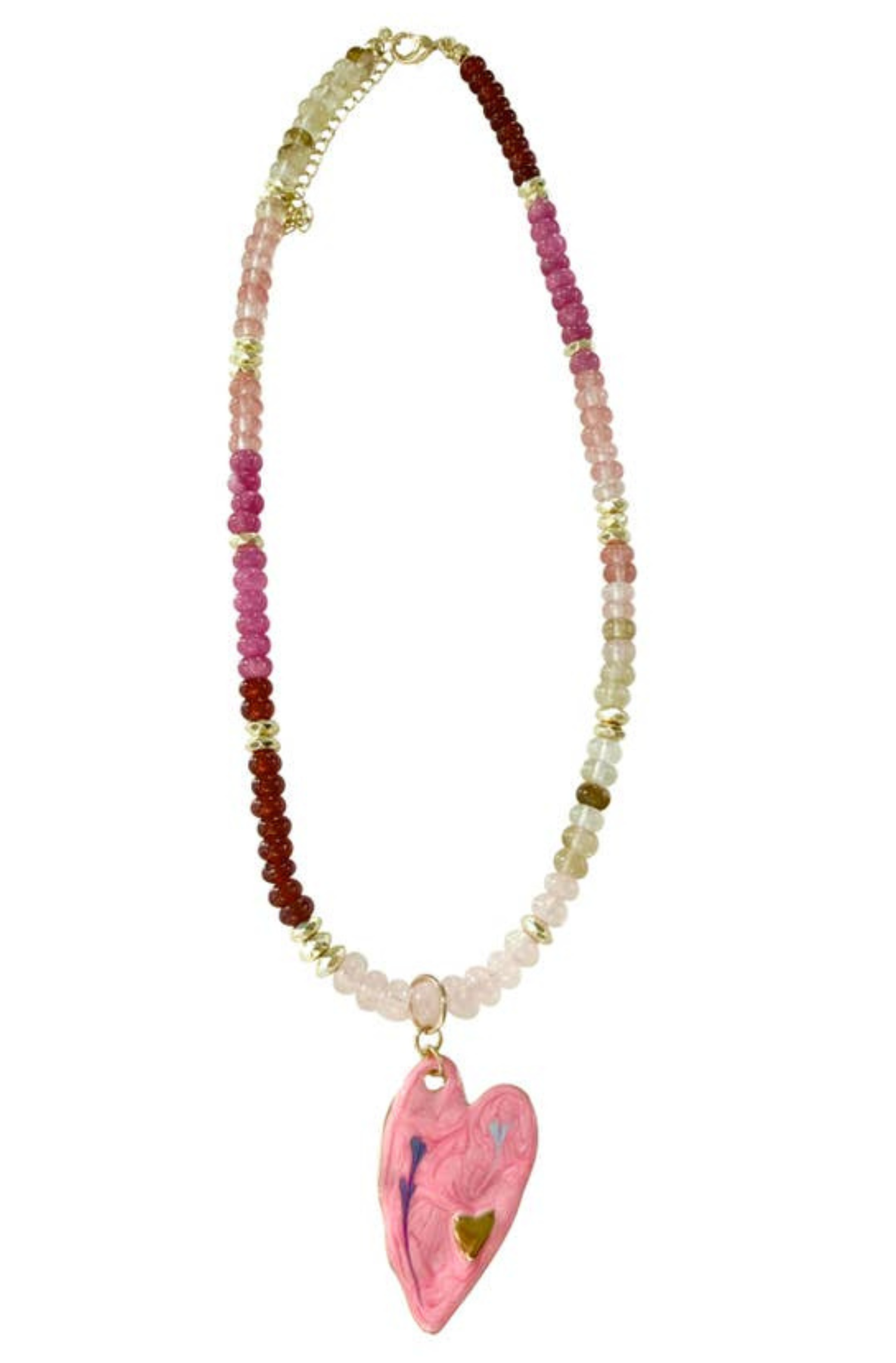 Ferrah Pink Beaded Necklace with Pink Heart Charm