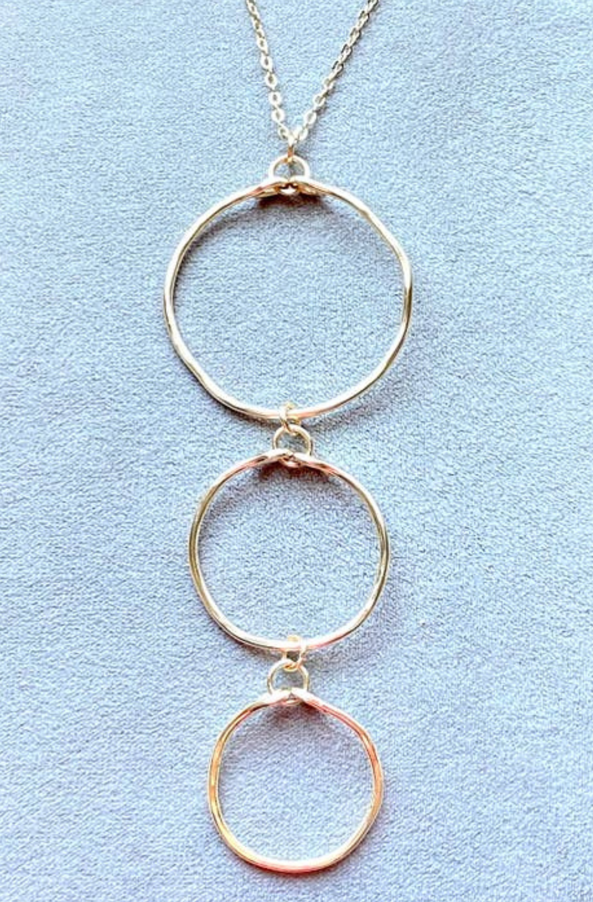 Sterling Silver Plated Triple Hoop Necklace Hammered Metal Handmade Pendant