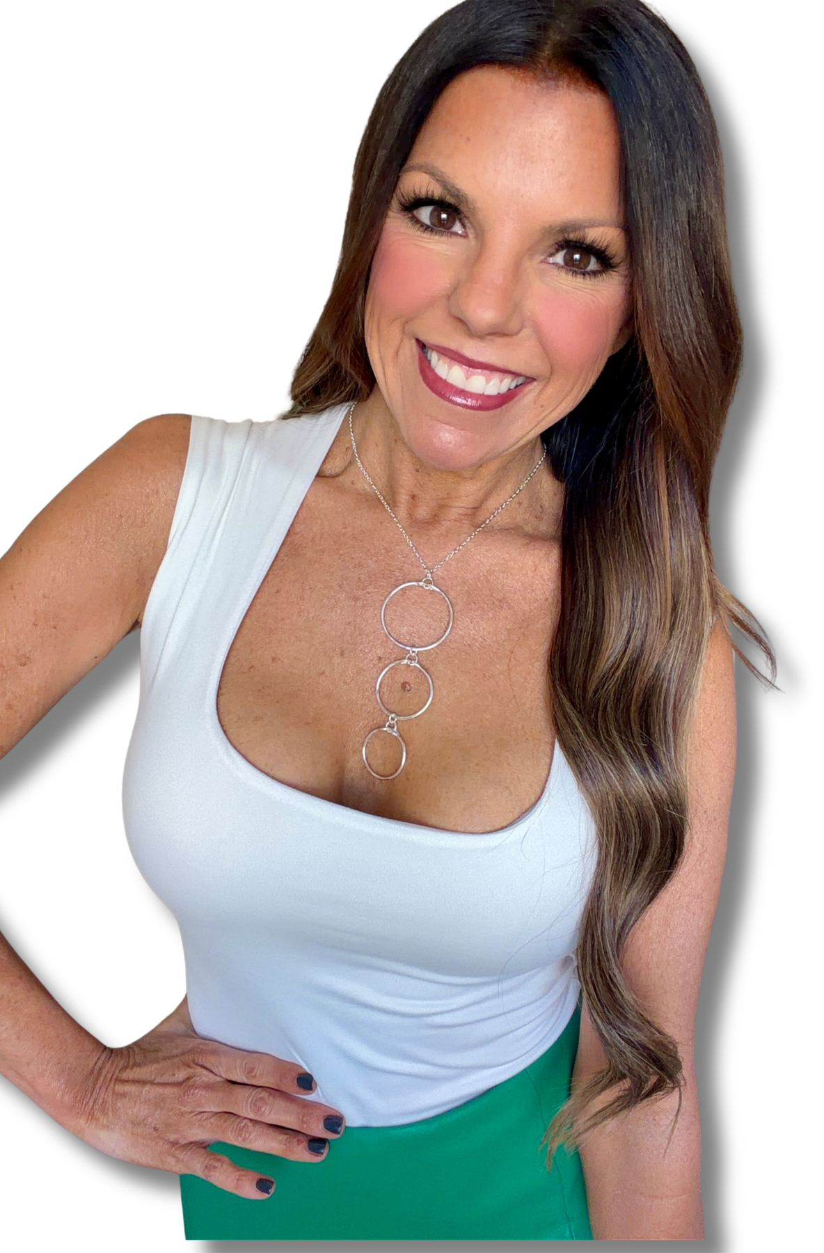 Regular price $79.00Bold yet beautifully minimal, this silver hammered triple hoop necklace features three hand-forged hoops in graduating sizes, creating an effortlessly eye-catching silhouette. Each hoop is carefully hammered for a cool, organic texture that adds depth and character. Designed to make a statement, this necklace is especially stunning paired with any V-neck, drawing the eye and elevating even the simplest look. Finished with a silver-plated cable chain measuring 18" plus a 1" extender, it’s the perfect blend of boho charm and modern edge.