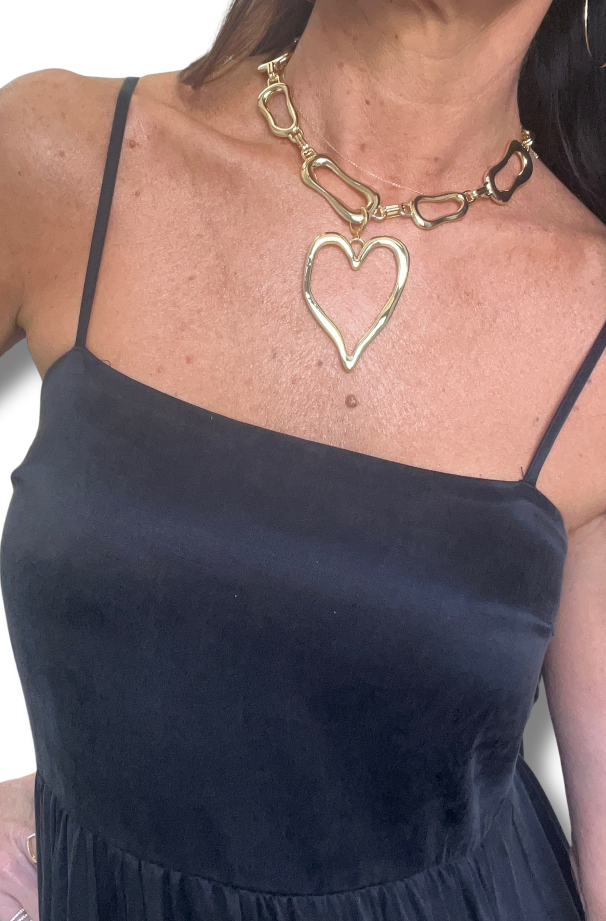 Mandy Open Link Chain Necklace with Jumbo Heart
