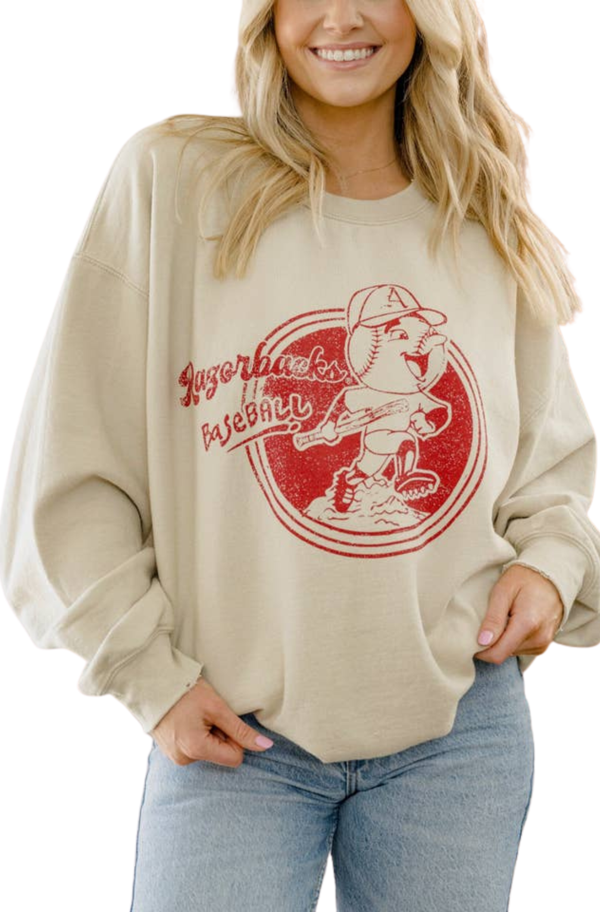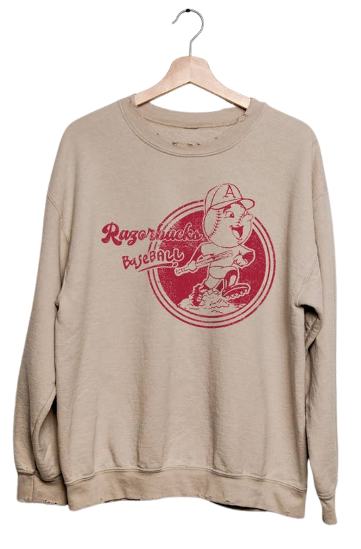 Arkansas Razorbacks Baseball Run Sand Thrifted Sweatshirt - LivyLu
