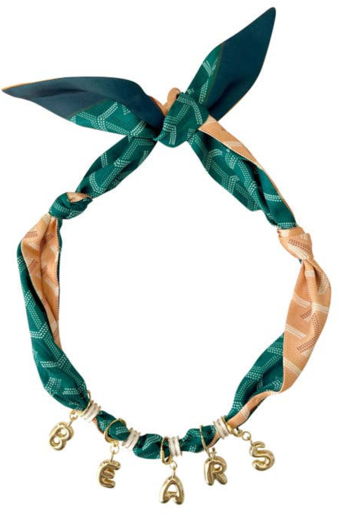 Green and Gold Game Day BEARS Bubble Letters Scarf Necklace