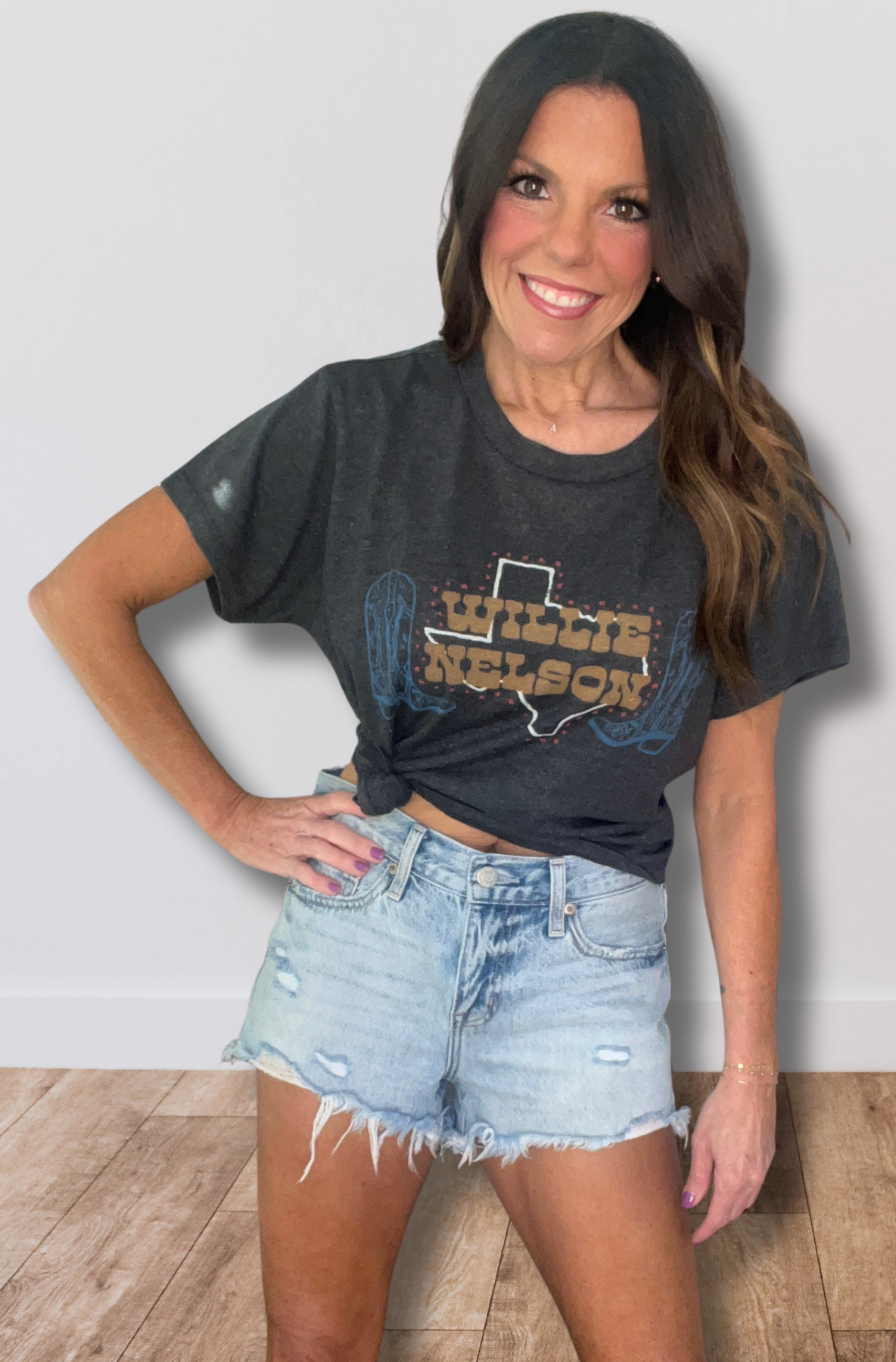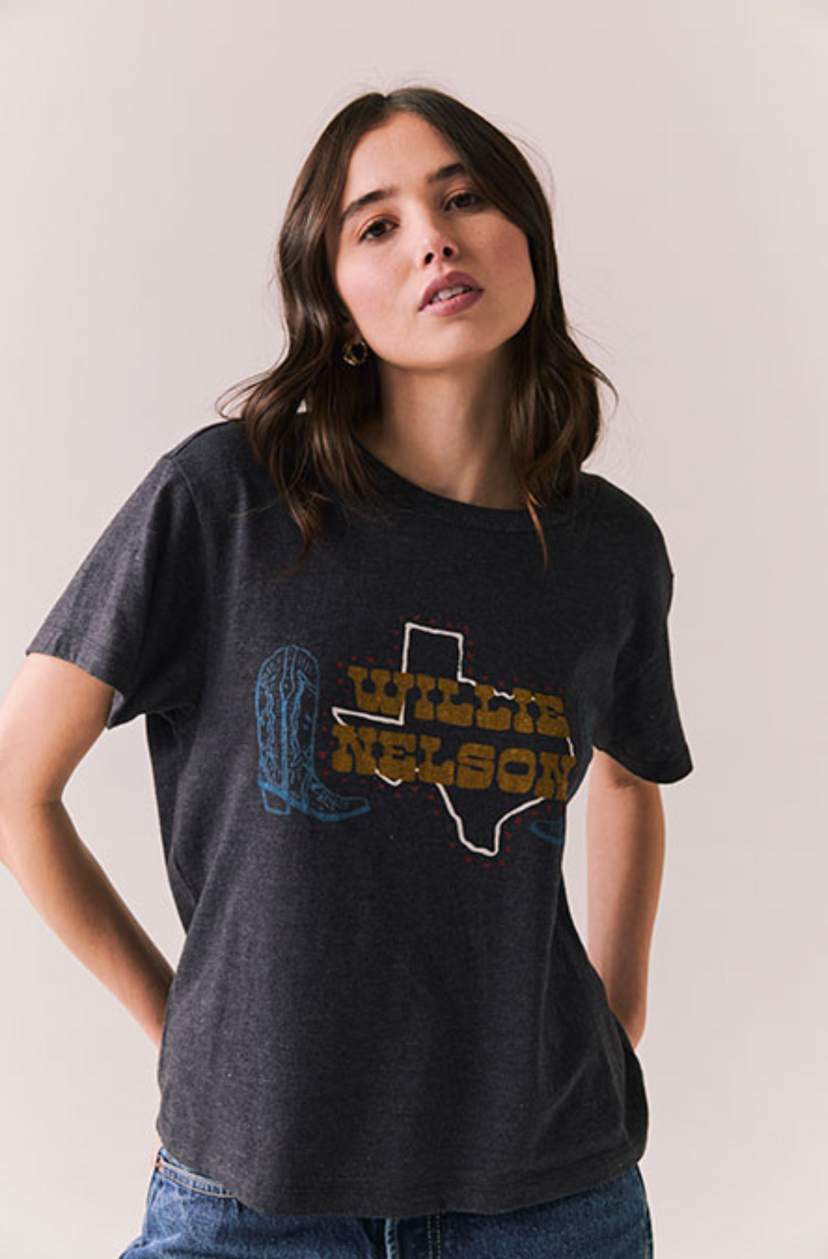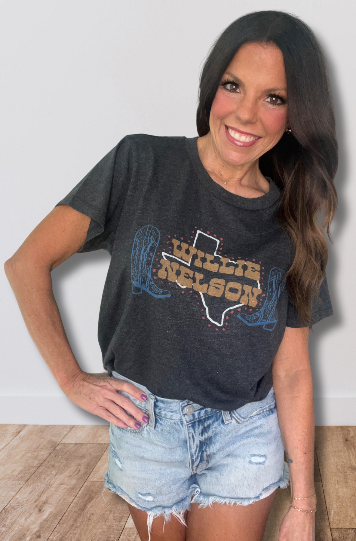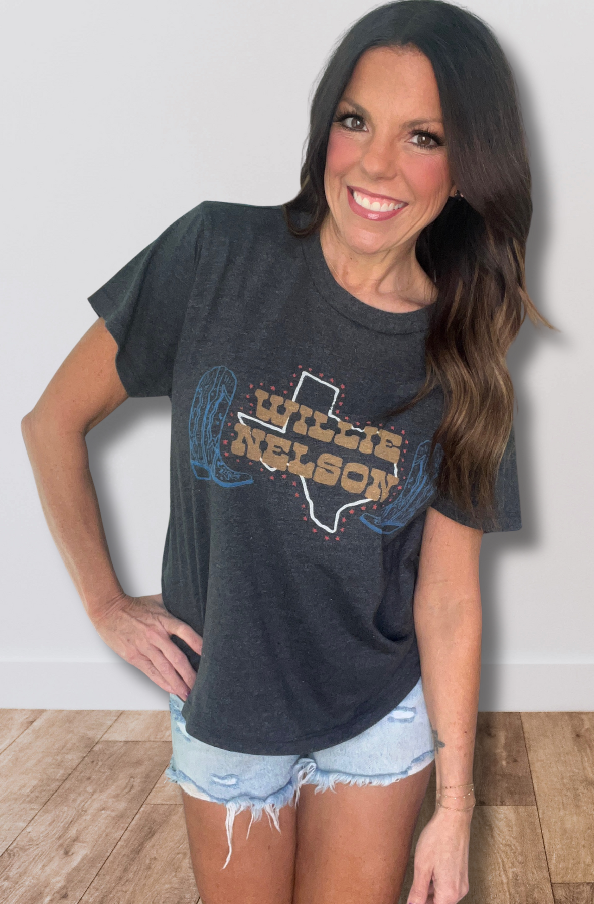 Show off your cowgirl cred with the Willie Nelson Texas Boots Tee.