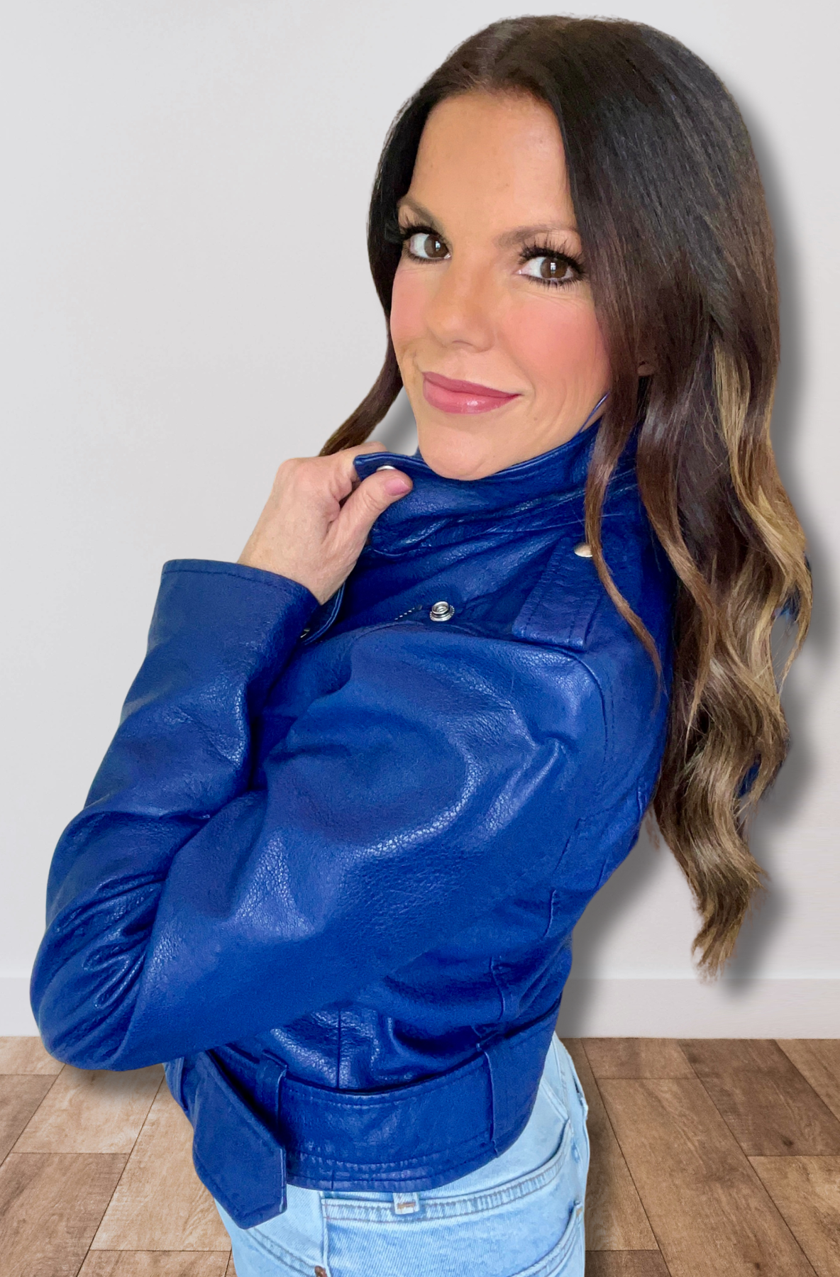 Add an edge to your look with this Tracy Moto biker-inspired alt leather jacket by Pistola. In a deep electric blue color, it has a tailored feminine fit with a belt hitting right at the waist to accentuate it. It's finished off with some shine from the silver hardware and zips.
